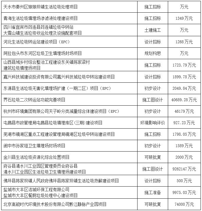 2019年1月份全國擬在建垃圾處理項(xiàng)目,詳情如下: