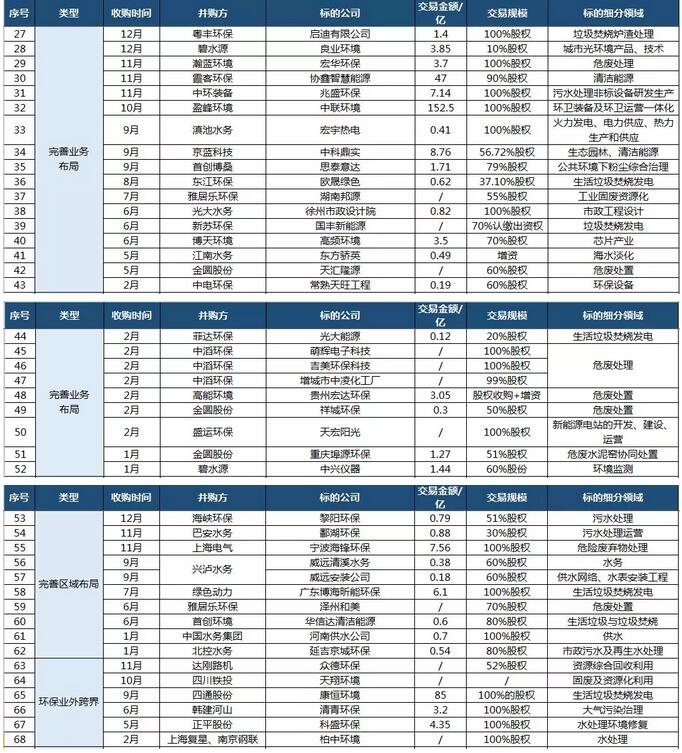 2018環(huán)保業(yè)外跨界并購