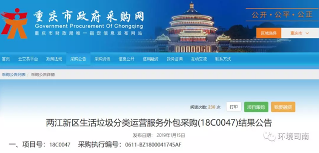 重慶市兩江新區(qū)生活垃圾分類項目中標結(jié)果