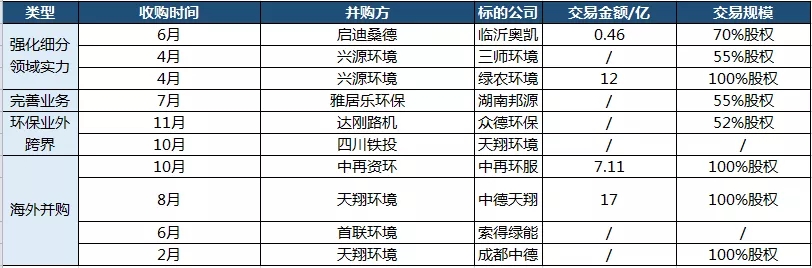 2018環(huán)保業(yè)外跨界并購