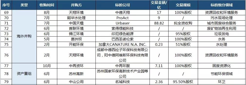 2018年再生資源相關(guān)并購