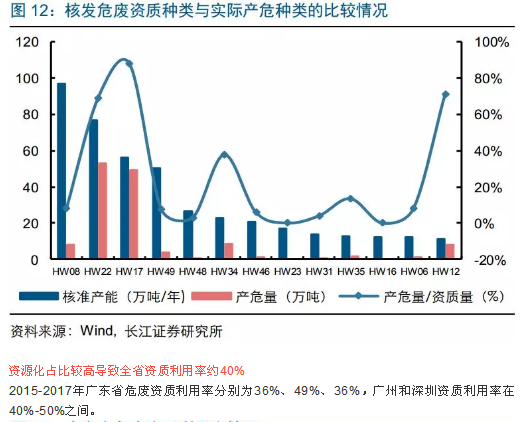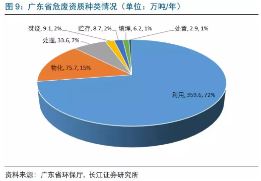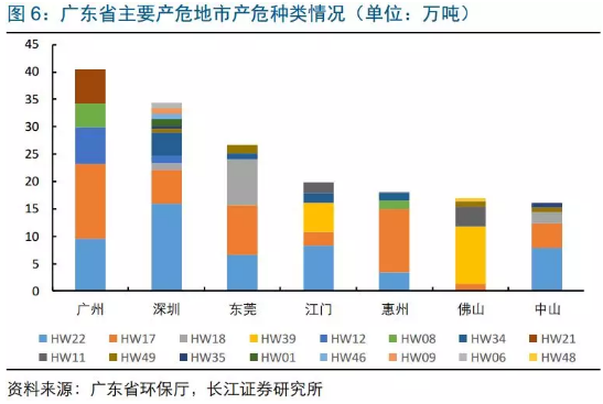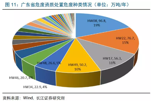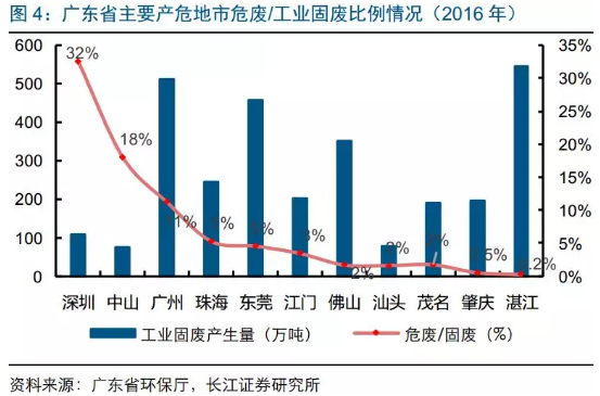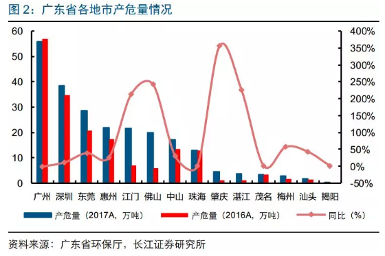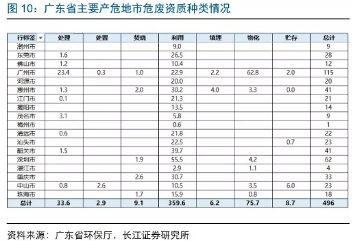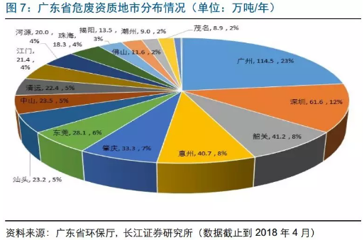 目前廣東危廢資質(zhì)達496萬噸,廣州、深圳占36%