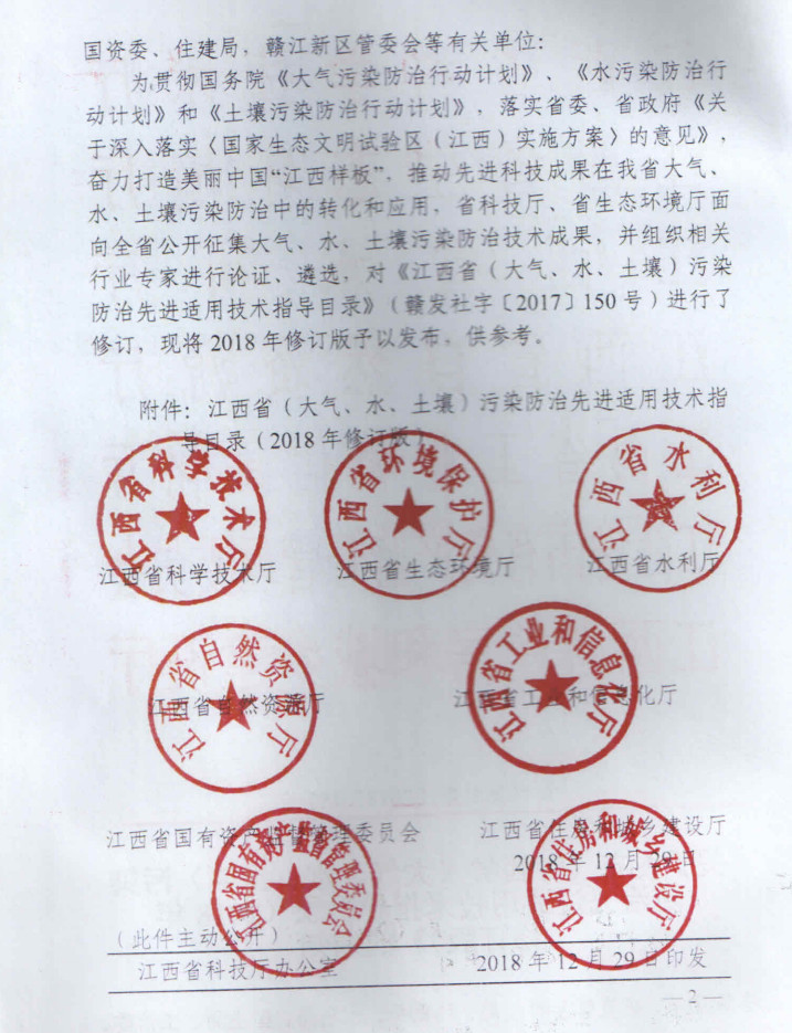 關(guān)于發(fā)布《江西省(大氣、水、土壤)污染 防治先進(jìn)適用技術(shù)指導(dǎo)目錄(2018年 修訂版)》的通知