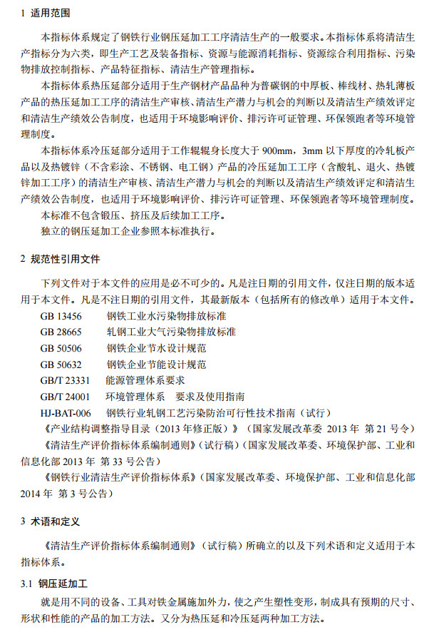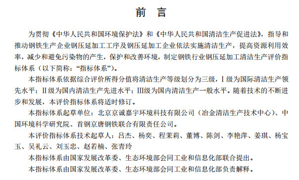 近日,國家發(fā)改委發(fā)布了鋼鐵行業(yè)(鋼延壓加工)清潔生產(chǎn)評價指標體系,該政策對于鋼延壓加工工序中的大氣污染物排放量、水污染物排放量、固體廢物處置方面都進行了說明,全文如下: