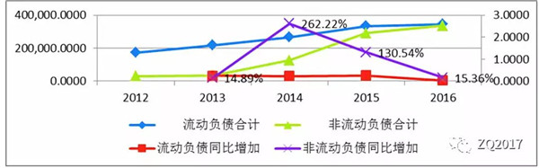 由于公司內(nèi)部的資金流動水平不高,2014年,2015年籌資力度加大,期間利用短期融資券和定向工具多次募資。同期長期負債也明顯增加,長期債務(wù)占比接近約40%,2015年籌資資金流凈額同比增加323.73%,賬面余額已經(jīng)接近40億元。