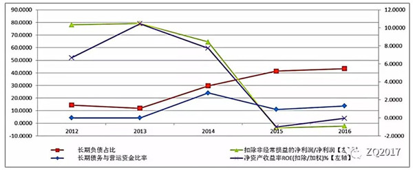觀察營運資本情況,公司近幾年的長期債務(wù)/營運資本接近或高于1。2015年營運資本周轉(zhuǎn)率同比降低85%,波動明顯。企業(yè)自由現(xiàn)金流進一步說明了公司償債水平:自2012年已處于流出狀態(tài),2015年流出凈額達到數(shù)十億級,同比增長高達388%。