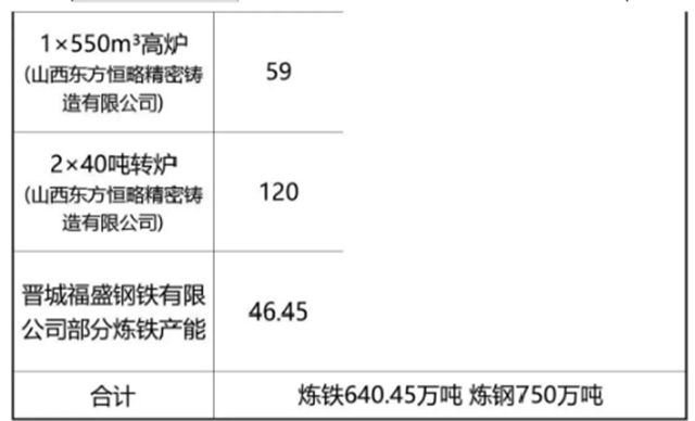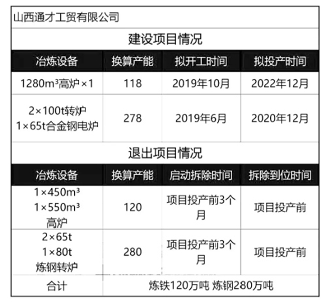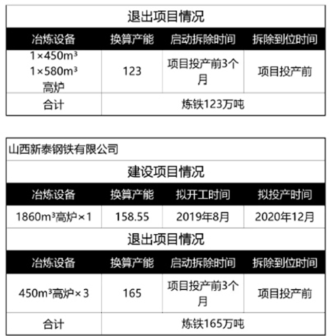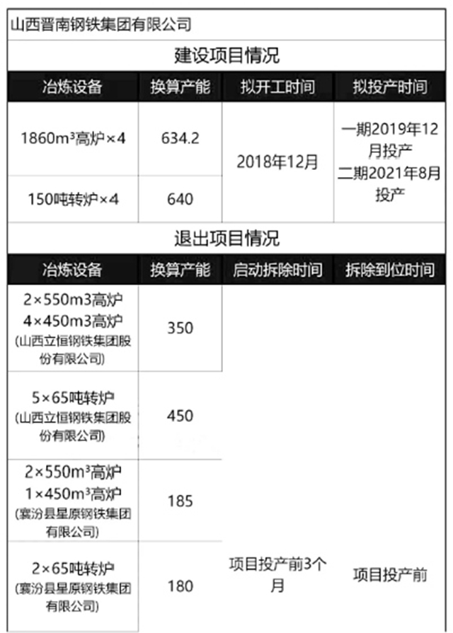 山西鋼企產(chǎn)能置換方案
