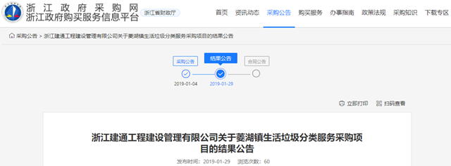 浙江省湖州市菱湖鎮(zhèn)生活垃圾分類服務采購項目發(fā)布中標公告,浙江聯(lián)運環(huán)境工程股份有限公司成為中標的社會資本方,中標金額為151.9363萬。