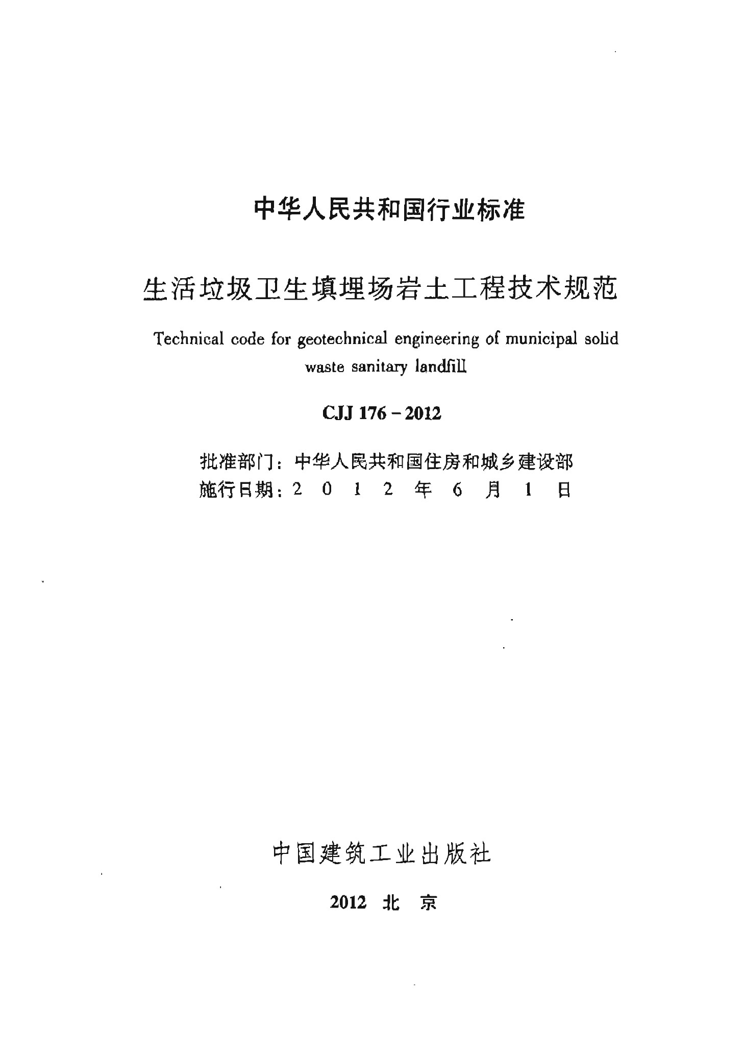 生活垃圾衛(wèi)生填埋場(chǎng)巖土工程技術(shù)規(guī)范(CJJ 176-2012)