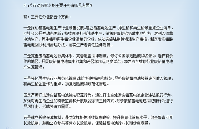 從任務(wù)上來說,依法打擊違法生產(chǎn)、違法銷售假冒偽劣產(chǎn)品以及涉廢鉛蓄電池違法犯罪行為;完善鉛酸蓄電池回收利用管理體系,強(qiáng)化再生鉛行業(yè)規(guī)范等將成為重點(diǎn)。方案也透露,將修訂《國家危險廢物名錄》,并且選擇有條件的地區(qū)開展廢鉛蓄電池集中收集和跨區(qū)域轉(zhuǎn)運(yùn)制度試點(diǎn)。