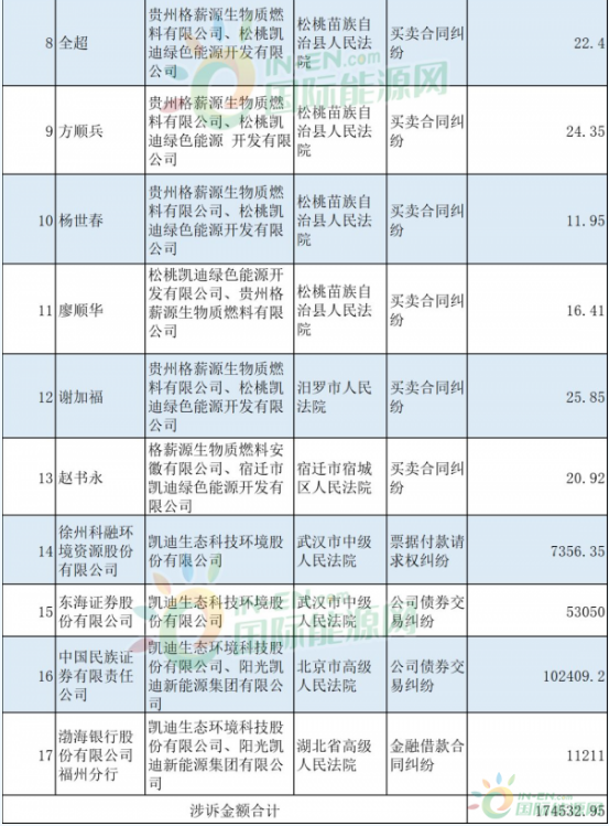 凱迪生態(tài)的危機在2018年又加深了一步,退市的傳言、拖欠工資的傳言時不時地出現(xiàn)在各大財經媒體的熱點頭條里。2018年5月,凱迪生態(tài)的有息債務本息余額合計超過240億元,2019年1月18日,凱迪生態(tài)發(fā)布公告稱,目前逾期債務共計116.47億元,占公司最近一期經審計凈資產106.33億元比例為109.54%。因為各種債務違約問題,凱迪生態(tài)已經深陷訴訟泥沼,國際能源網記者調查發(fā)現(xiàn),僅2019年1月18-1月25日,短短的一周時間,該公司新增的訴訟案件已經多達17起,累計涉訴金額高達17.45億元。
