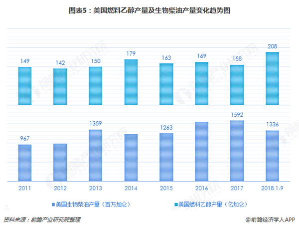 與乙醇產業(yè)相比,美國生物柴油的發(fā)展較晚,規(guī)模也相對較小。據了解,美國生物柴油始于20世界90年代,主要原料為美國的另一大農作物——大豆。美國通過相關的法案和蔡志補貼的政策支持生物柴油的生產和小菲根據美國能源信息署的數據,2017年美國生物柴油的產量在15.92億加侖左右。