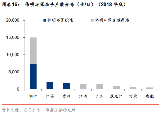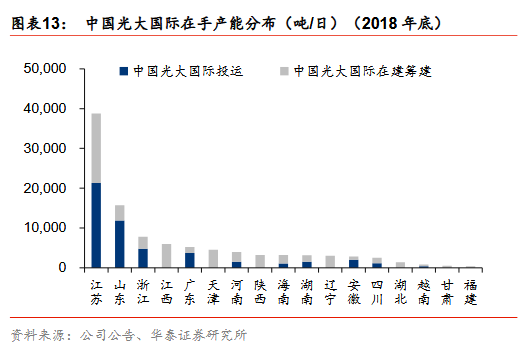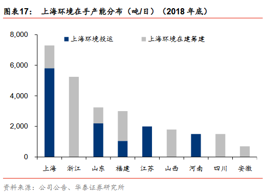 產(chǎn)能加速釋放:17年城市新增4.2萬噸/日(2012-2016年均新增3.2萬噸/日);17縣城投運速度提速,我們估計17新增3.2萬噸/日(十二五年均新增0.4萬噸/日)。按照選取典型上市公司(18年已投運產(chǎn)能市占率29%)投產(chǎn)規(guī)劃,18-20年累計投運增速24%/24%/33% vs 按照十三五規(guī)劃測算18-20年累計投運產(chǎn)能增速23%/19%/16%,上市公司投產(chǎn)增速高于行業(yè)增速,表明1)行業(yè)增速可能超預(yù)期或 ;2)上市公司已投運市占率將提升。分區(qū)域:山東/上海/寧夏等省市提前完成十三五目標(biāo),廣東/北京/安徽/江蘇等19-20年仍具較大空間,中西部新增投運崛起,東部部分地區(qū)仍有空間。