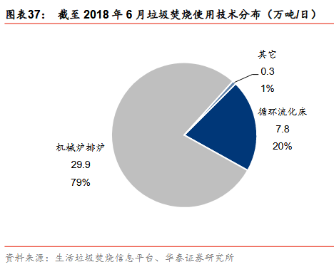 使用機(jī)械爐排爐技術(shù)的垃圾焚燒產(chǎn)能自2011年來顯著提升,截至2018年6月,已投運垃圾焚燒產(chǎn)能中使用機(jī)械爐排爐技術(shù)的產(chǎn)能達(dá)29.9萬噸,占比達(dá)到79%。