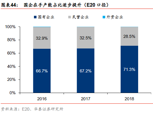垃圾焚燒行業(yè)的參與者以國企和民企為主,國企在手產(chǎn)能市占率提升明顯,由16年的66.7%提升至18年的71.3%。從在手項目量(E20口徑)的角度看,2018年國企市占率大約71.3%,民企市占率大約28.5%,外企市占率大約0.2%。且從變化趨勢上看,國企在手產(chǎn)能市占率提升明顯,由16年的66.7%提升至18年的71.3%,主要與國企的資金優(yōu)勢、拿單優(yōu)勢相關(guān)聯(lián)。