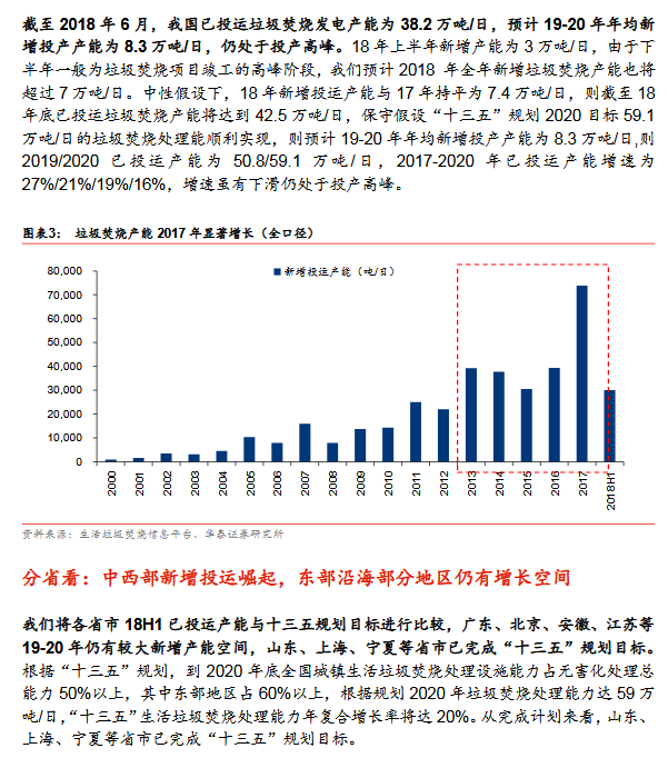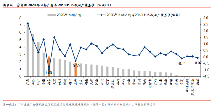 產(chǎn)能加速釋放:17年城市新增4.2萬(wàn)噸/日(2012-2016年均新增3.2萬(wàn)噸/日);17縣城投運(yùn)速度提速,我們估計(jì)17新增3.2萬(wàn)噸/日(十二五年均新增0.4萬(wàn)噸/日)。按照選取典型上市公司(18年已投運(yùn)產(chǎn)能市占率29%)投產(chǎn)規(guī)劃,18-20年累計(jì)投運(yùn)增速24%/24%/33% vs 按照十三五規(guī)劃測(cè)算18-20年累計(jì)投運(yùn)產(chǎn)能增速23%/19%/16%,上市公司投產(chǎn)增速高于行業(yè)增速,表明1)行業(yè)增速可能超預(yù)期或 ;2)上市公司已投運(yùn)市占率將提升。分區(qū)域:山東/上海/寧夏等省市提前完成十三五目標(biāo),廣東/北京/安徽/江蘇等19-20年仍具較大空間,中西部新增投運(yùn)崛起,東部部分地區(qū)仍有空間。