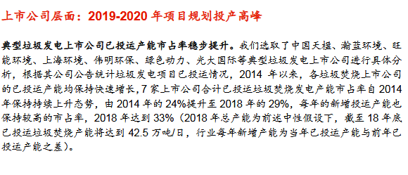 按上市公司規(guī)劃的投產(chǎn)進(jìn)度,2019-2020年為投產(chǎn)高峰期,2019-2020年新增投運(yùn)產(chǎn)能同比增速將高達(dá)24%、72%;18-20年累計(jì)投運(yùn)增速24%/24%/33%,高成長(zhǎng)可期。上述典型垃圾焚燒上市公司的規(guī)劃新增產(chǎn)能將在2019-2020年間大規(guī)模釋放,目前處于在建和籌建階段的項(xiàng)目將會(huì)集中投產(chǎn),預(yù)計(jì)2019-2020年新增投運(yùn)總產(chǎn)能將分別達(dá)到2.9萬(wàn)噸/日、5.0萬(wàn)噸/日;其中光大國(guó)際、綠色動(dòng)力、旺能環(huán)境、中國(guó)天楹、上海環(huán)境等新增產(chǎn)能居前。