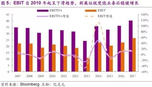 第二次剝離則發(fā)生在2014年,公司退出了對中國市場的股權(quán)投資,同時(shí)剝離了全資子Wheelabrator公司以及全部的垃圾焚燒業(yè)務(wù)。