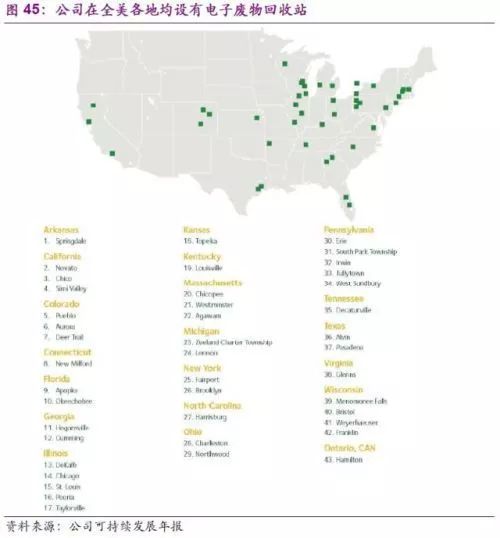 在電子廢物回收業(yè)務(wù)加速發(fā)展的同時(shí),其他危廢處理也是公司關(guān)注的重點(diǎn)。公司的“At Your Door Special CollectionSM”正是專門為居民用戶處理危廢而推出的一站式服務(wù)。包括車用產(chǎn)品、電池、園林化學(xué)物質(zhì)、特別是熒光燈等危廢均可通過公司專用的危廢收集車上門收取。公司的固廢收集車(包括危廢)也是公司的一大亮點(diǎn),截止2016年,已有多達(dá)18500輛使用天然氣驅(qū)動(dòng),在為環(huán)保服務(wù)的同時(shí)也真正做到了自我環(huán)保價(jià)值的體現(xiàn)。