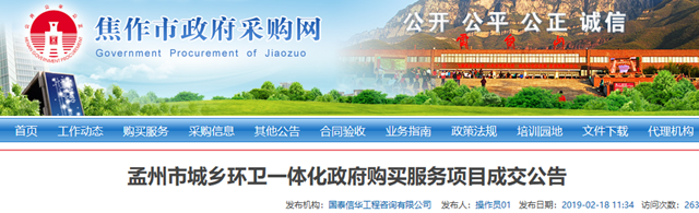 據(jù)悉,項目的服務內(nèi)容為對孟州市城區(qū)及11個鄉(xiāng)鎮(zhèn)辦事處清掃保潔、垃圾清運等工作。