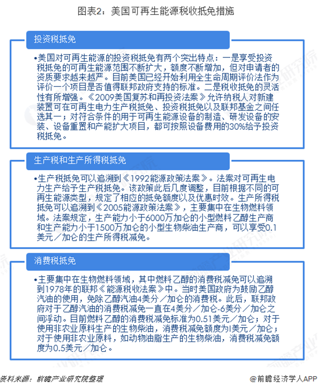 激勵(lì)類(lèi)政策中稅收抵免是聯(lián)邦政府促進(jìn)可再生能源發(fā)展的最主要的經(jīng)濟(jì)措施。聯(lián)邦政府會(huì)根據(jù)可再生能源發(fā)展的實(shí)際情況,對(duì)稅收抵免的覆蓋范圍、抵免額度不斷予以調(diào)整。