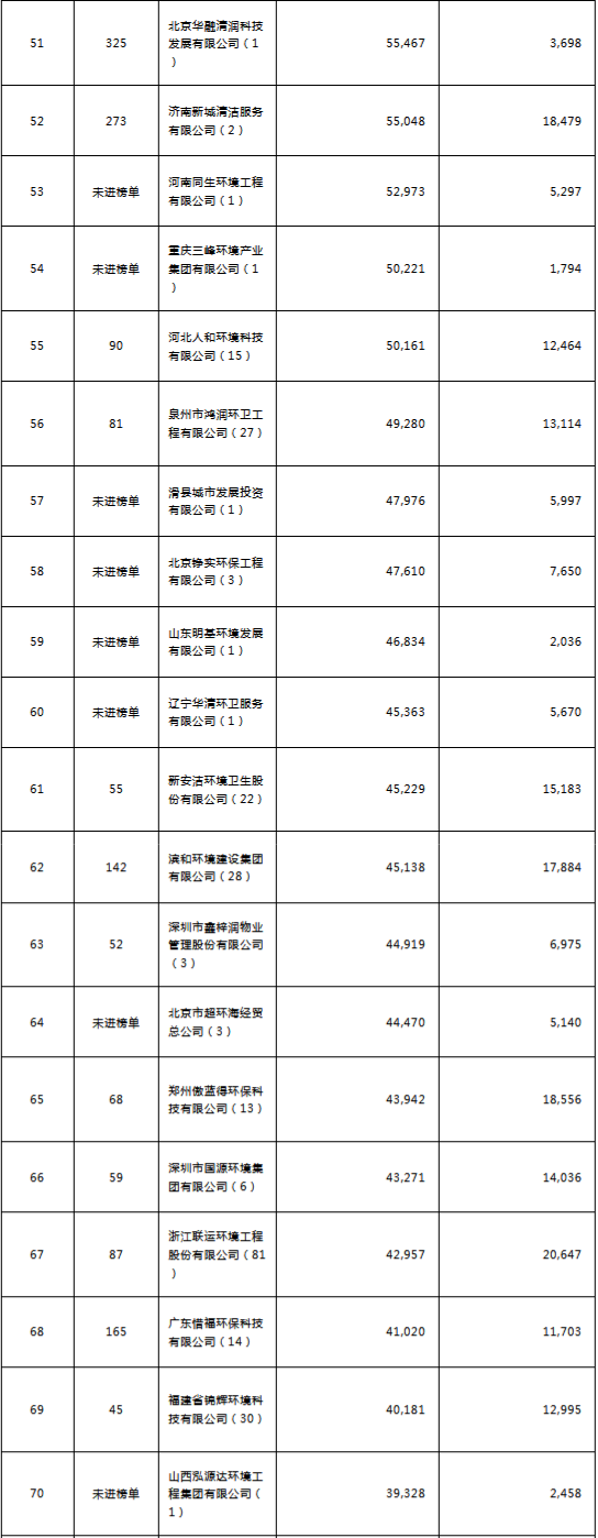 環(huán)境司南2018年度環(huán)衛(wèi)服務(wù)企業(yè)(簽約能力)百?gòu)?qiáng)榜