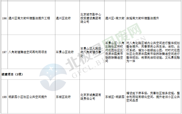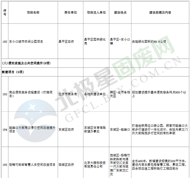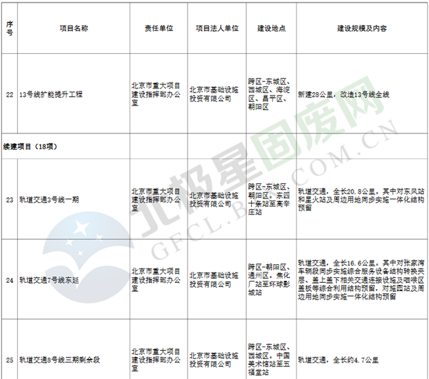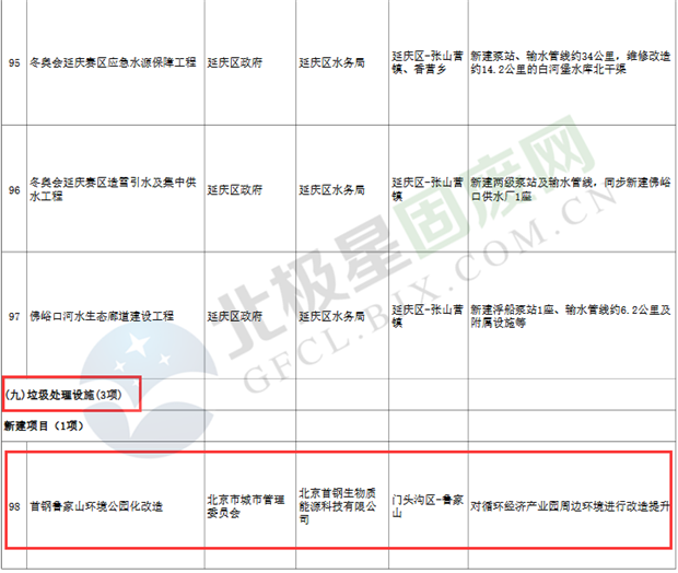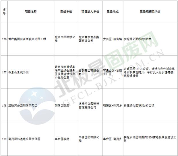 9.垃圾處理設(shè)施項目3個,重點(diǎn)實(shí)施豐臺區(qū)循環(huán)經(jīng)濟(jì)產(chǎn)業(yè)園滲瀝液處理廠二期工程、朝陽區(qū)建筑垃圾資源化處置項目等。