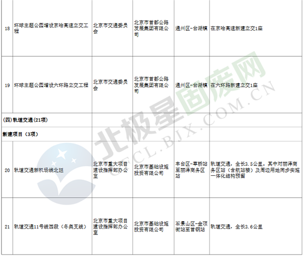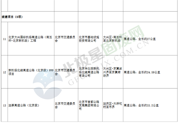 3.公路項目11個,重點(diǎn)實(shí)施京雄高速、延崇高速(北京段)等;