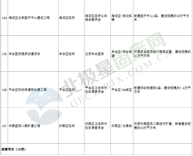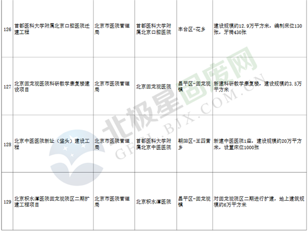 12.醫(yī)療項目25個,重點(diǎn)實(shí)施北京口腔醫(yī)院遷建、積水潭醫(yī)院回龍觀院區(qū)二期擴(kuò)建等;