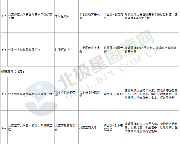 11.教育項目20個,重點(diǎn)實(shí)施中國人民大學(xué)通州新校區(qū)一期建設(shè)項目、北京學(xué)校等;
