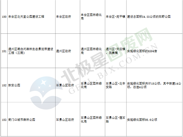 16.綠化項目19個,重點(diǎn)實(shí)施城市綠心園林綠化工程、溫榆河公園朝陽示范區(qū)等;