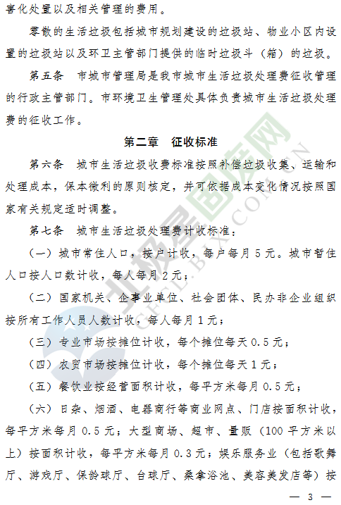 (九)單位、家庭裝修及其他活動(dòng)等臨時(shí)產(chǎn)生垃圾的,按量計(jì)收,每立方米50元;