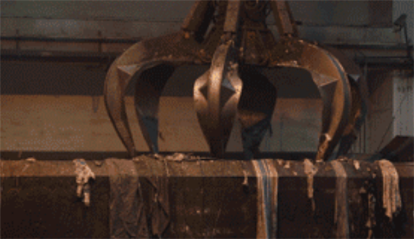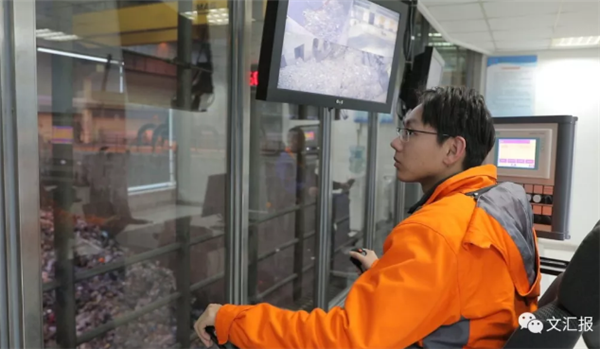 很快,就到了老港再生能源中心。每天有超過3000噸生活垃圾在這里的焚燒廠分解、發(fā)電,變廢為寶。在垃圾待焚燒庫區(qū), 6個爪子的機器抓手,像抓娃娃機一樣,強有力地一把抓起垃圾,靈活地送入焚燒口。這個巨大的抓手,一次可以抓送8噸垃圾。