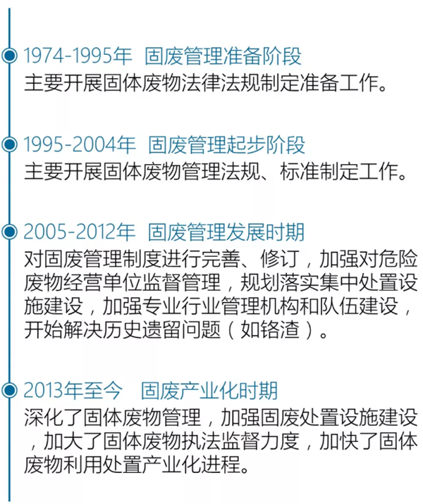 當前國內(nèi)部分地區(qū)在城市規(guī)劃、產(chǎn)業(yè)布局、基礎設施建設方面,對于固體廢物減量、回收、利用與處置問題重視不夠、考慮不足,嚴重影響城市經(jīng)濟社會可持續(xù)發(fā)展[3]。 “無廢城市”建設的提出,有利于從城市整體層面繼續(xù)深化固廢管理制度改革,提升固體廢物綜合管理水平。自建國以來,我國固體廢物管理發(fā)展歷程主要分為以下四個時期[4]: