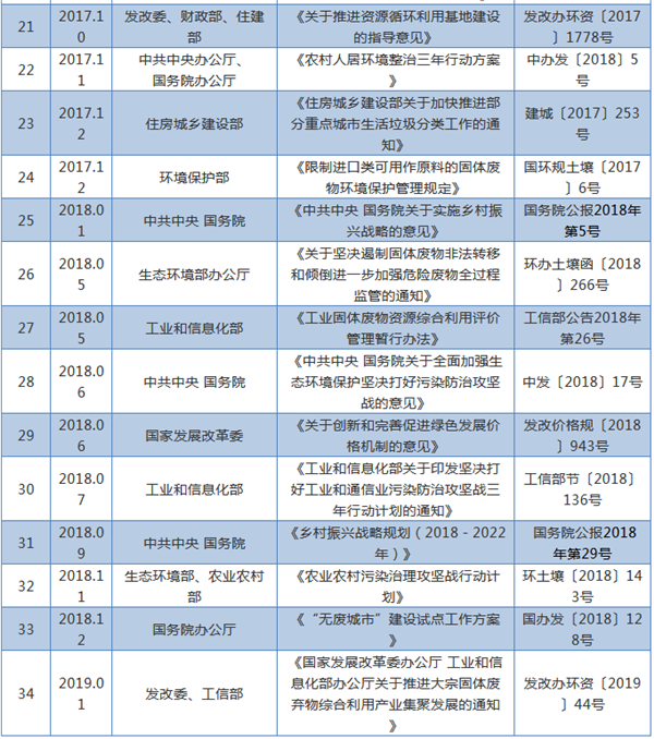 “十三五”以來,國家頻繁出臺相關政策為“無廢城市”的建設進行鋪墊,這些政策對于“無廢城市”建設發(fā)展影響重大、指導意義深遠。