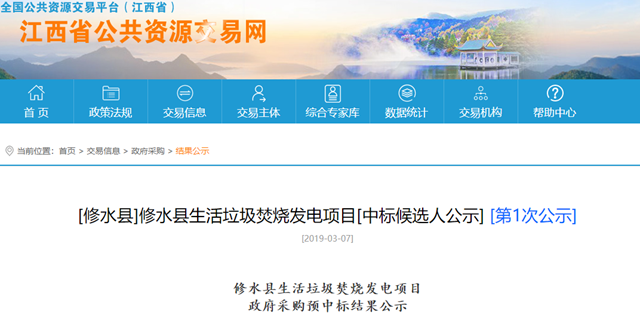 原標(biāo)題:63.5元/噸,光大國際預(yù)中標(biāo)江西省修水縣生活垃圾焚燒發(fā)電項(xiàng)目