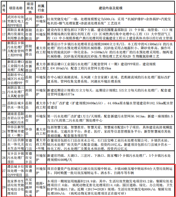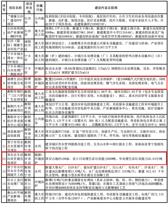 導(dǎo)讀:近日,湖南省發(fā)布了關(guān)于分解下達(dá)湖南省2019年P(guān)PP項(xiàng)目前期工作中央預(yù)算內(nèi)投資計(jì)劃的公示,涉及多個(gè)環(huán)保項(xiàng)目,其中有5個(gè)垃圾焚燒發(fā)電項(xiàng)目等多個(gè)固廢項(xiàng)目,還涉多個(gè)污水處理廠項(xiàng)目,詳情如下: