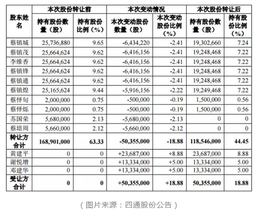 3月8日晚間,四通股份公告稱,公司實(shí)控人、部分股東擬將持有的公司無限售流通股5035.5萬股股份(占公司股本總額的18.88%)以協(xié)議轉(zhuǎn)讓的方式分別轉(zhuǎn)讓給黃建平、謝悅增、鄧建華。