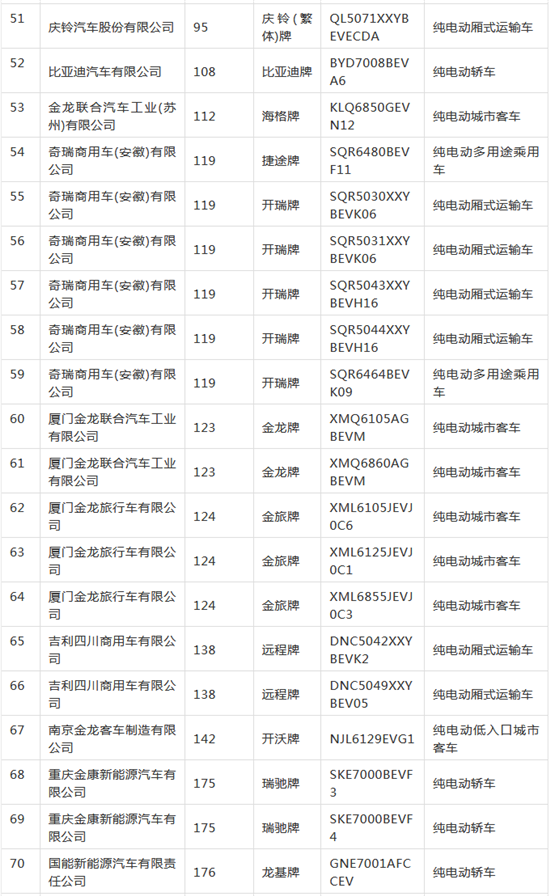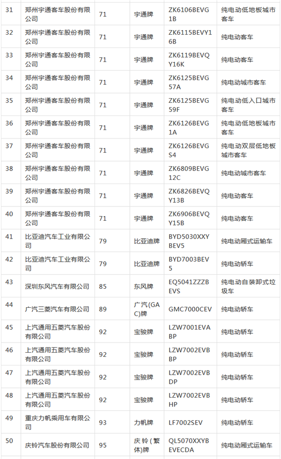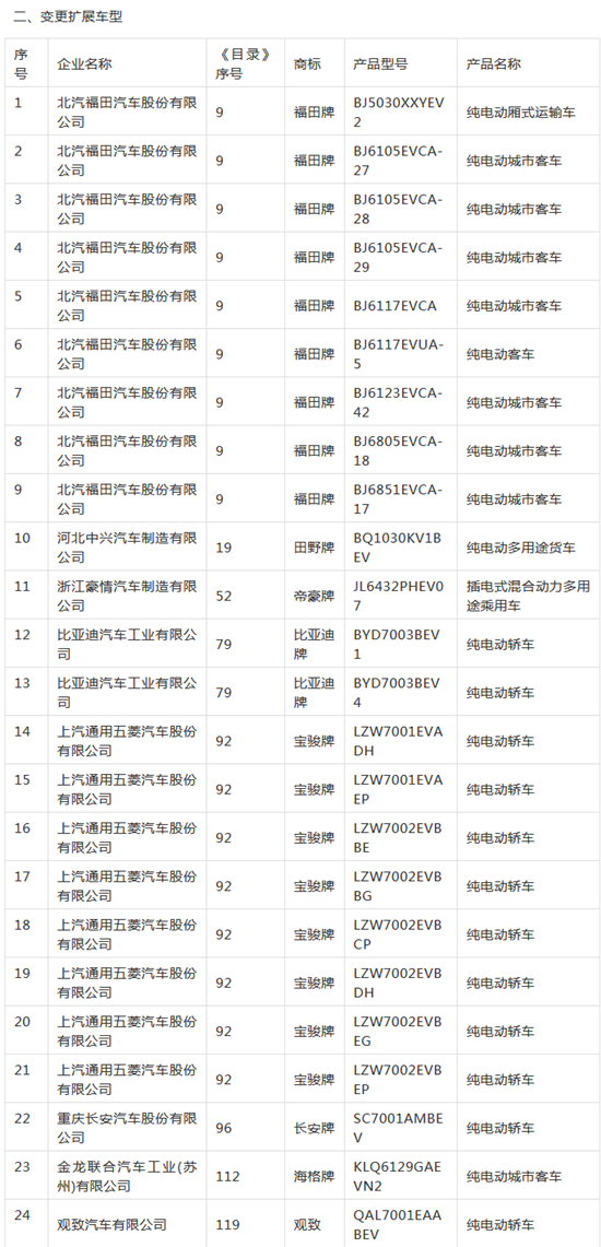 新能源汽車推廣應用推薦車型目錄
