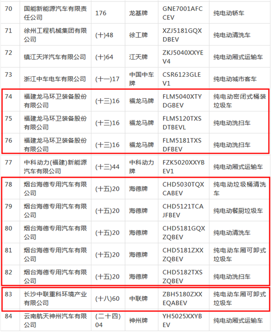 在目錄中,涉及多家環(huán)衛(wèi)裝備企業(yè)的環(huán)衛(wèi)車,如中聯(lián)環(huán)境的純電動車廂可卸式垃圾車等,煙臺海德的純電動餐廚垃圾車、純電動洗掃車等,龍馬環(huán)衛(wèi)的純電動洗掃車等,宇通重工的純電動洗掃車等。