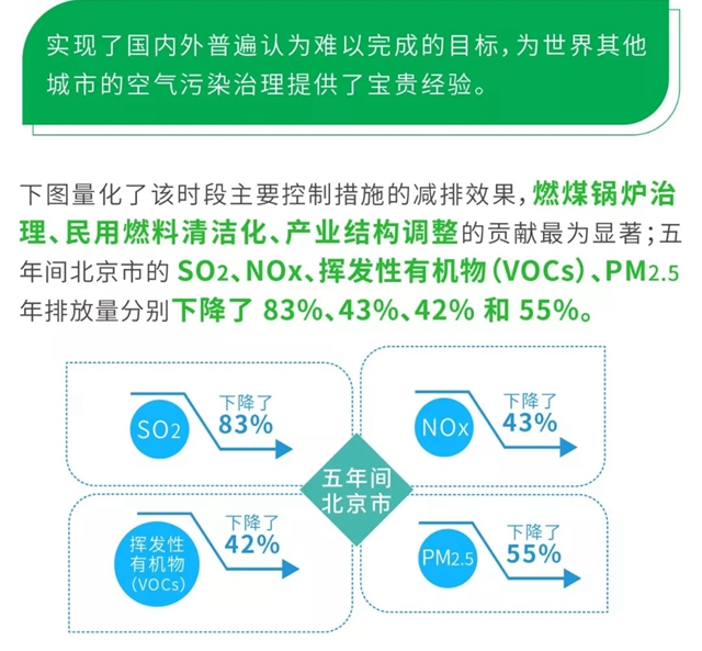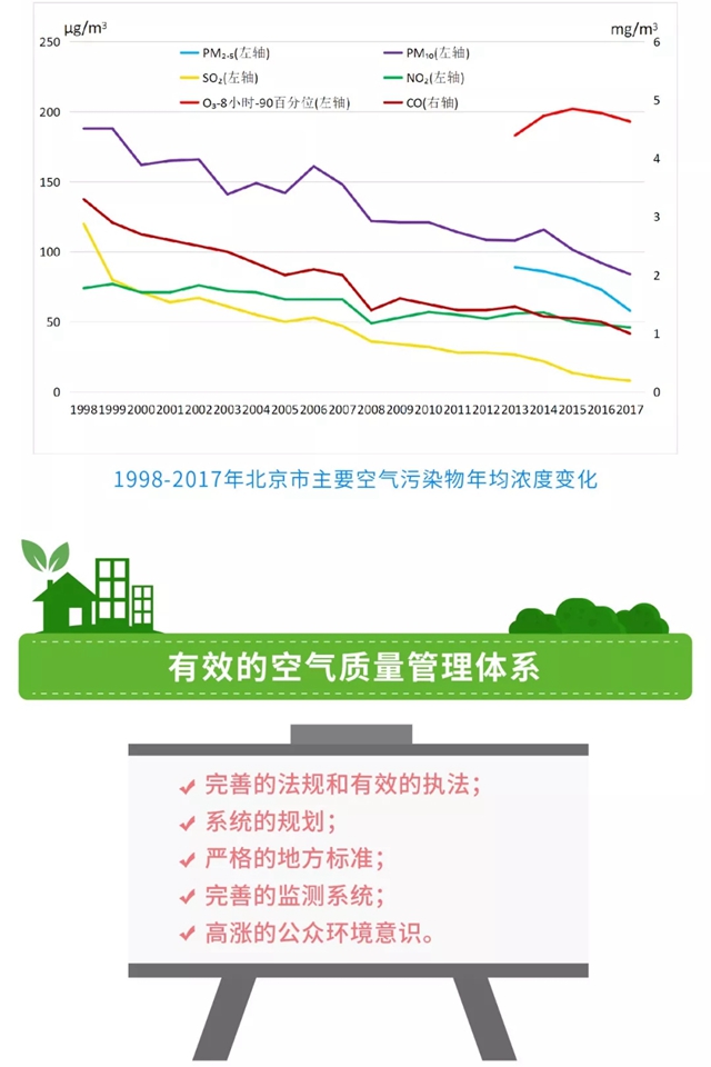 在2013-2017年短短5年間,北京空氣中的細(xì)顆粒物(PM2.5)年均濃度下降了35%,京津冀地區(qū)的PM2.5濃度下降了25%。世界上還沒有任何一個(gè)城市或地區(qū)做到了這一點(diǎn)。報(bào)告由聯(lián)合國環(huán)境署和北京市生態(tài)環(huán)境局聯(lián)合發(fā)布,概述了北京如何一步步完善和改進(jìn)其空氣質(zhì)量管理計(jì)劃,并為北京可以采取的近期、中期和長期措施提出建議,以保持其清潔空氣的發(fā)展勢(shì)頭。