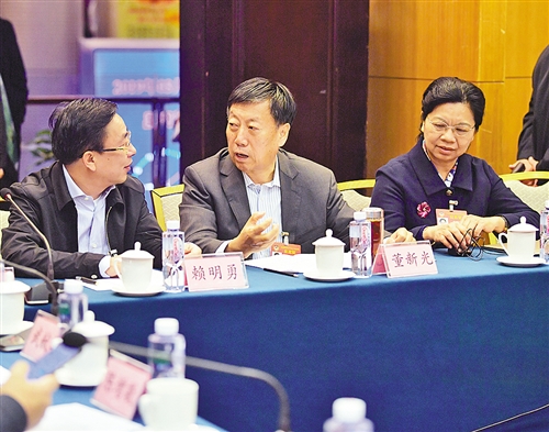 左圖 3月10日,全國政協(xié)民建界別在駐地舉行小組會議。會前,全國政協(xié)委員蒙曉靈、董新光、賴明勇(從右至左)就“如何探索生態(tài)優(yōu)先、綠色發(fā)展為導(dǎo)向的新路子”展開交流。 本報記者 高興貴攝