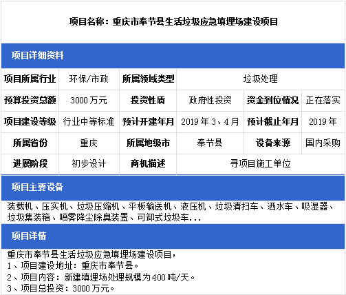中項(xiàng)網(wǎng)獨(dú)家授權(quán)北極星固廢網(wǎng)發(fā)布最新垃圾處理項(xiàng)目(2019年3月18日更新),其中包括垃圾填埋場(chǎng)項(xiàng)目、城鄉(xiāng)一體化垃圾處理轉(zhuǎn)運(yùn)站項(xiàng)目等垃圾處理項(xiàng)目。具體內(nèi)容如下:
