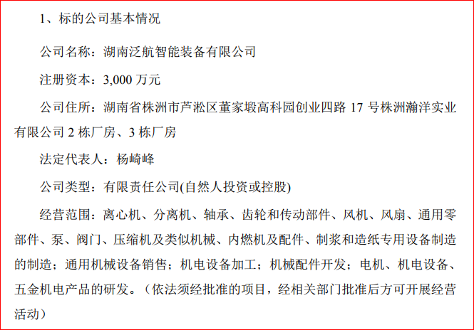 公告顯示,標(biāo)的公司泛航裝備成立于2018 年 3 月,是集離心鼓風(fēng)機研發(fā)、制造、檢測、裝配及試驗于一體的創(chuàng)新型技術(shù)企業(yè),業(yè)務(wù)范圍包括高速高效離心鼓風(fēng)機、混合器、機電設(shè)備的研發(fā)、制造與銷售。