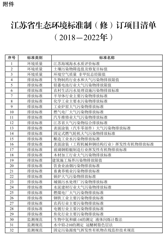 附件:江蘇省生態(tài)環(huán)境標(biāo)準(zhǔn)制(修)訂項目清單(2018-2022年)