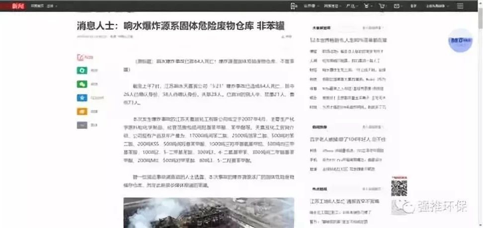 近日,針對響水爆炸事故,有文章指出,“據(jù)一位接近事故調查組的人士透露,本次事故的爆炸源是該廠的固體危險廢物儲存?zhèn)}庫,而非此前很多媒體報道的苯罐。”目前這一報道,已被多家主流媒體轉載。