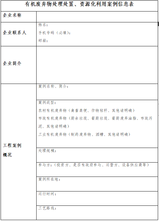 在此背景下,中國(guó)環(huán)聯(lián)擬面向行業(yè)征集“有機(jī)廢棄物處理處置、資源化利用典型案例”,征集范圍包括農(nóng)村有機(jī)廢棄物(作物秸稈、畜禽養(yǎng)殖廢棄物等)、市政有機(jī)廢棄物(廚余垃圾、餐廚垃圾、餐廚廢棄油脂、市政污泥等)、工業(yè)有機(jī)廢棄物(制藥有機(jī)廢棄物、酒精廢水等)的處理處置及資源化利用項(xiàng)目案例。請(qǐng)有意向的企業(yè)按附件填寫申報(bào)表,并發(fā)郵件至以下郵箱地址。