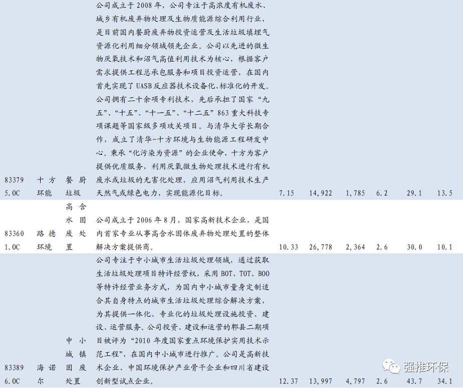 ③固廢&資源回收:十方環(huán)能(餐廚垃圾)、路德環(huán)境(高含水固廢處置)、海諾爾(中小城鎮(zhèn)固廢處置)、寶海微元(資源利用);