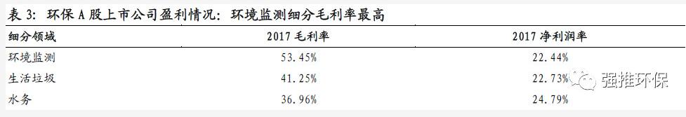 盈利水平:毛利率、凈利潤(rùn)率高。參考A股環(huán)保上市公司2017年平均毛利率33.65%,凈利潤(rùn)率14.44%,環(huán)境監(jiān)測(cè)細(xì)分盈利能力相對(duì)最強(qiáng)。