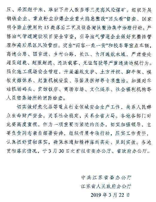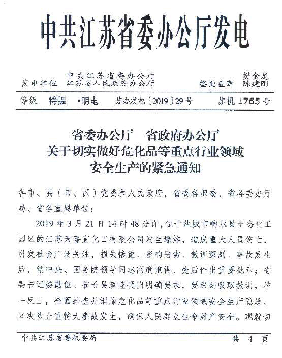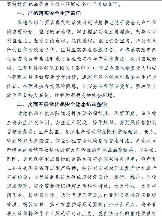 江蘇省發(fā)布《關于切實做好?;返戎攸c行業(yè)領域安全生產(chǎn)的緊急通知》,要深入開展“263”和化工企業(yè)“四個一批”專項行動,嚴格落實“三個一律不批”。規(guī)范新改擴建化工項目準入,提高門檻和設防等級,防止工藝技術落后、安全環(huán)保風險高、資源利用效率低、產(chǎn)能過剩等項目的低水平重復建設。嚴格行政許可標準,對不符合標準規(guī)范的,一律不予許可。深入開展重點企業(yè)本質安全專項行動,提高自動化控制水平。